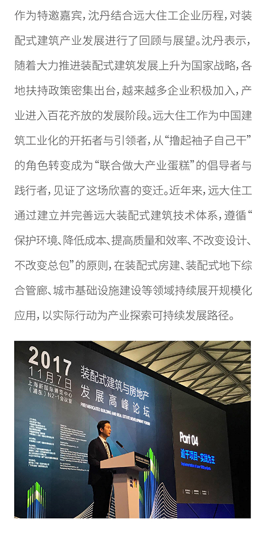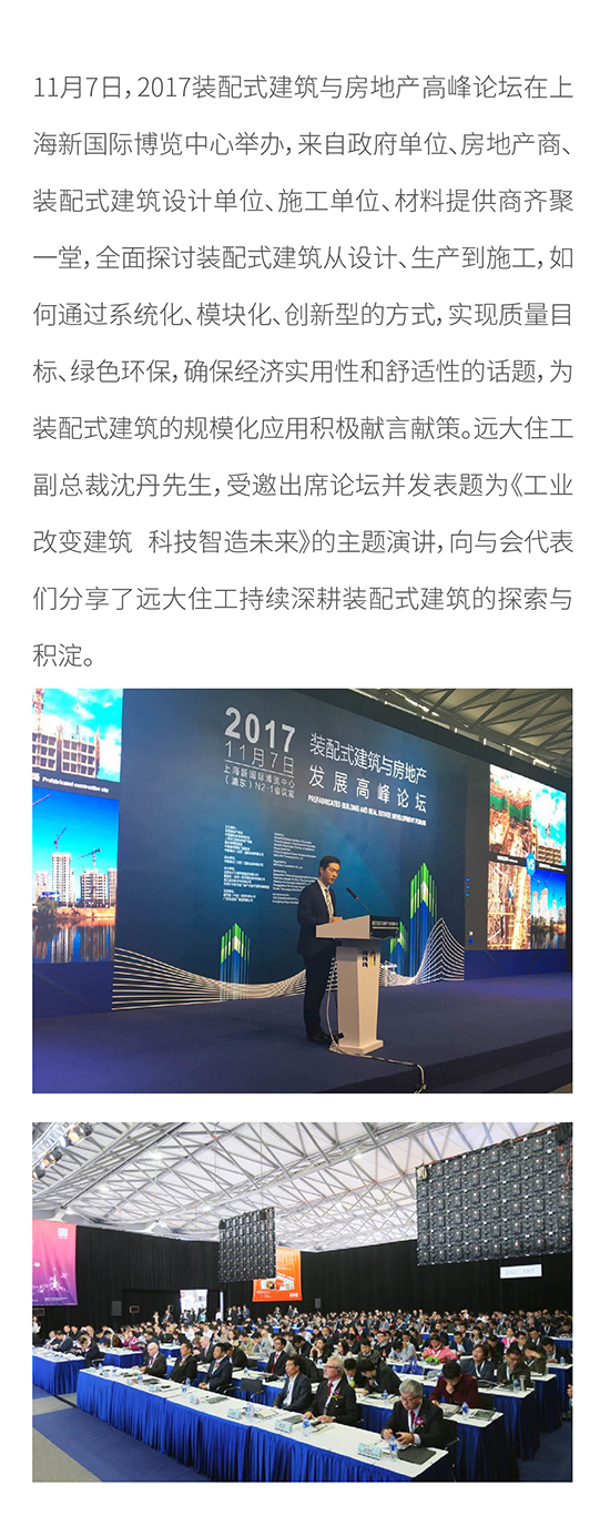 2017裝配式建筑與房地產(chǎn)高峰論壇在滬舉辦 遠(yuǎn)大住工副總裁沈丹受邀出席并發(fā)表主題演講