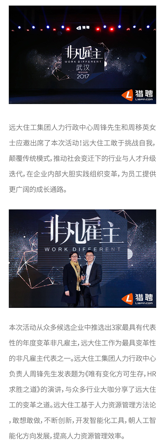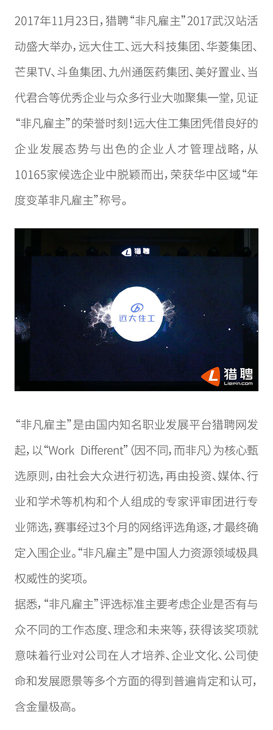遠大住工榮膺2017華中區域“年度變革非凡雇主”