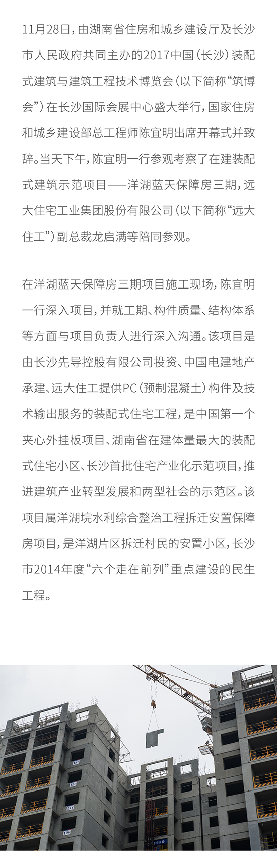 住建部總工陳宜明考察洋湖藍天保障房 遠大住工裝配式建筑技術體系獲肯定