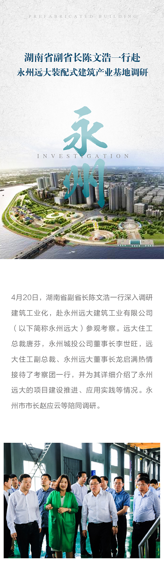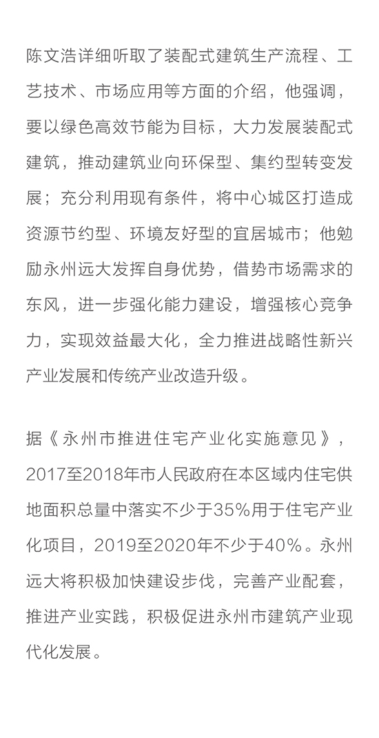 湖南省副省長陳文浩一行赴永州遠大裝配式建筑產業基地調研