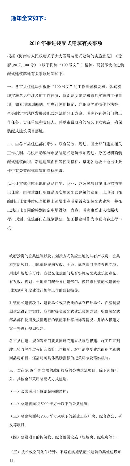 海南推進裝配式建筑落地 5000㎡以上公共建筑全部采用裝配式