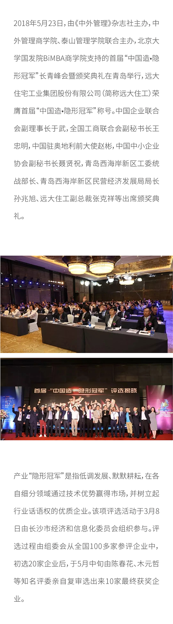 遠大住工榮膺首屆“中國造?隱形冠軍”