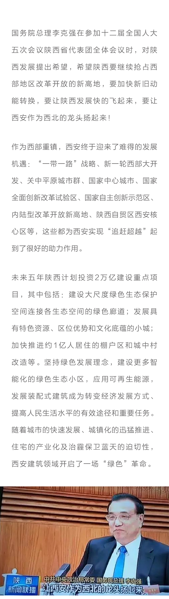 國務院總理李克強:2萬億支持陜西建設!裝配式建筑助力讓西安龍頭揚起來
