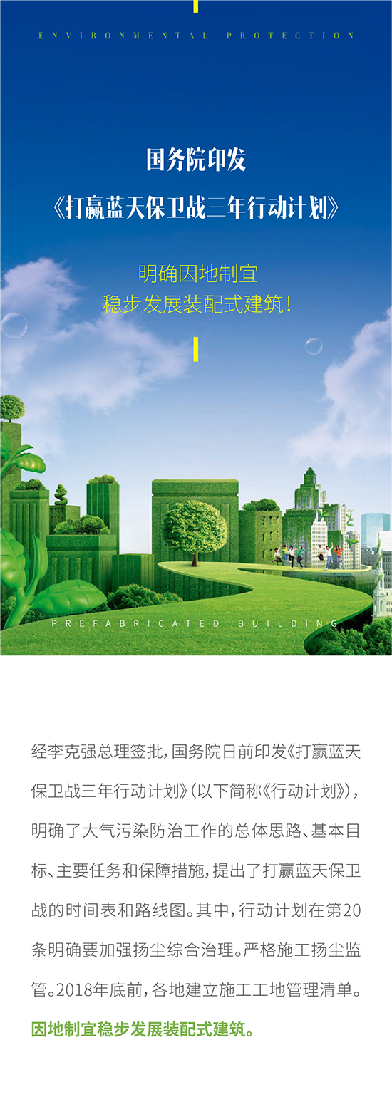 國務院印發《打贏藍天保衛戰三年行動計劃》, 明確因地制宜穩步發展裝配式建筑!