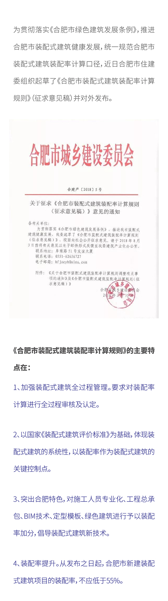 最新,《合肥市裝配式建筑裝配率計(jì)算規(guī)則(征求意見(jiàn)稿)》發(fā)布