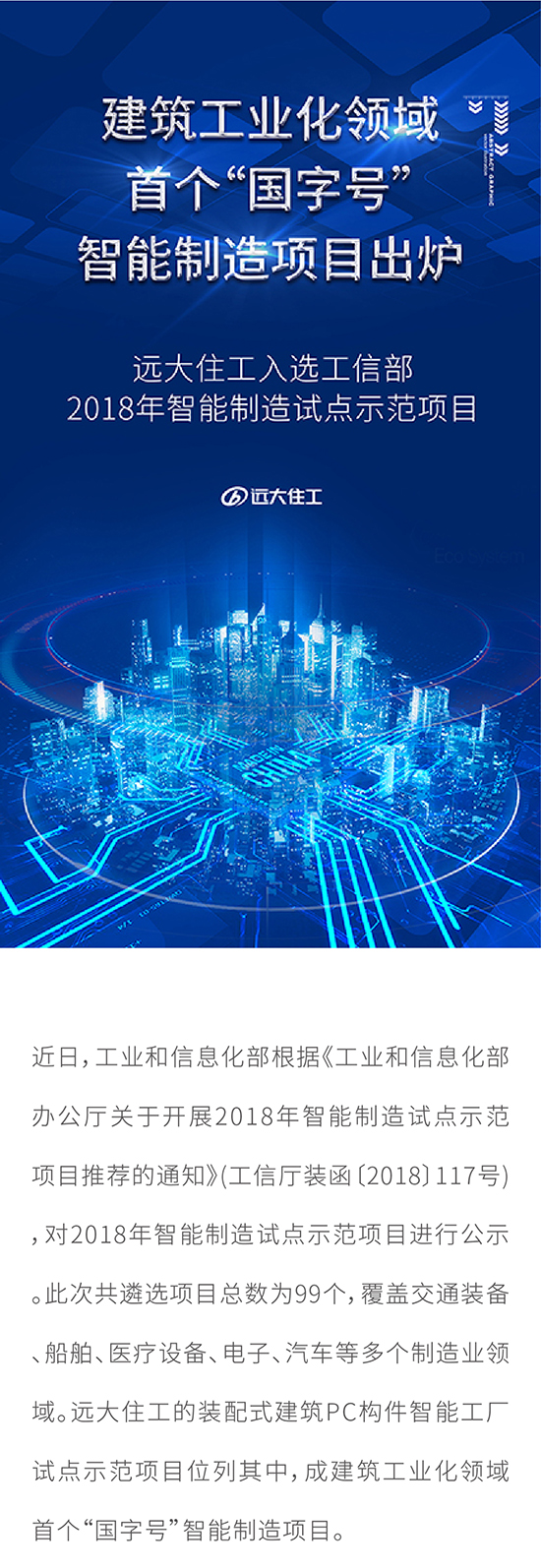 建筑工業(yè)化領(lǐng)域首個(gè)“國字號(hào)”智能制造項(xiàng)目出爐 遠(yuǎn)大住工入選工信部2018年智能制造試點(diǎn)示范項(xiàng)目