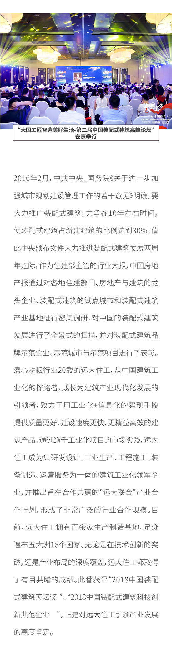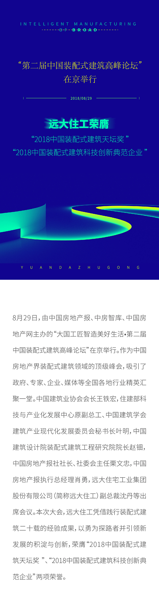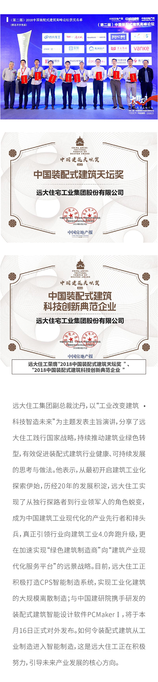 遠大住工榮膺 “2018中國裝配式建筑天壇獎 ” 、“2018中國裝配式建筑科技創(chuàng)新典范企業(yè) ”