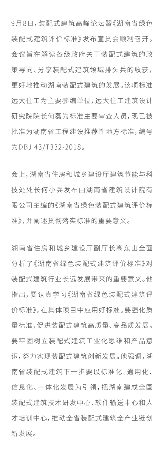 遠(yuǎn)大住工參編《湖南省綠色裝配式建筑評(píng)價(jià)標(biāo)準(zhǔn)》正式發(fā)布