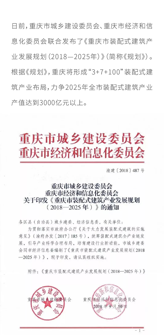 最新|重慶市出臺(tái)裝配式建筑產(chǎn)業(yè)發(fā)展規(guī)劃(2018—2025年),力爭(zhēng)2025年裝配式建筑產(chǎn)業(yè)產(chǎn)值達(dá)到3000億元以上