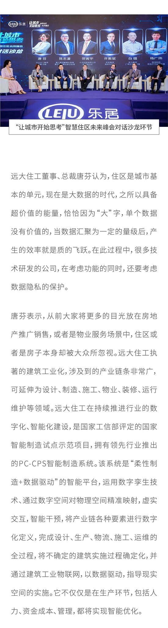 遠大住工董事、總裁唐芬受邀出席智慧住區未來峰會: 智造可持續的綠色建筑為智慧住區賦能