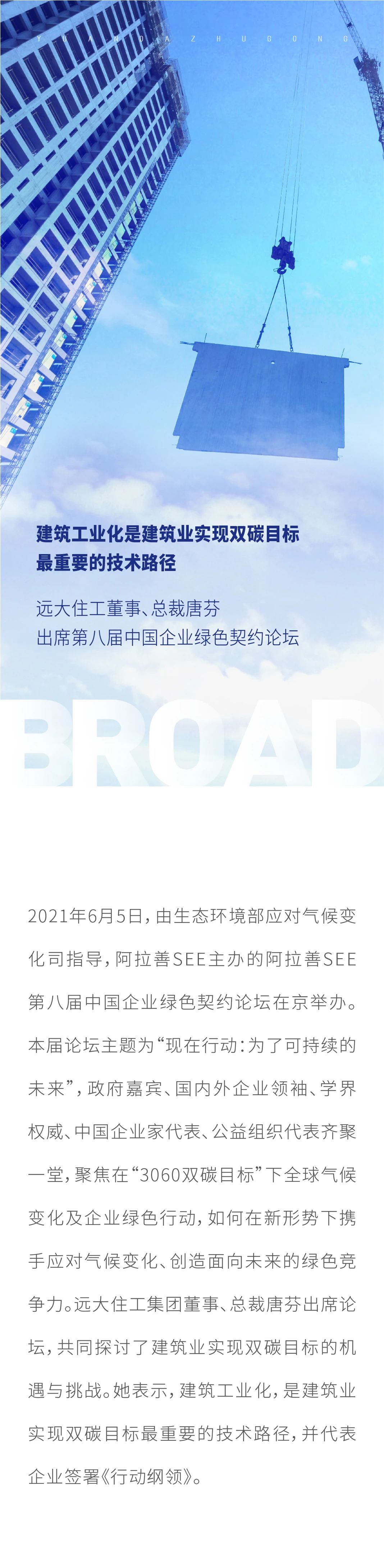 建筑工業(yè)化是建筑業(yè)實現(xiàn)雙碳目標最重要的技術(shù)路徑 遠大住工董事、總裁唐芬出席第八屆中國企業(yè)綠色契約論壇
