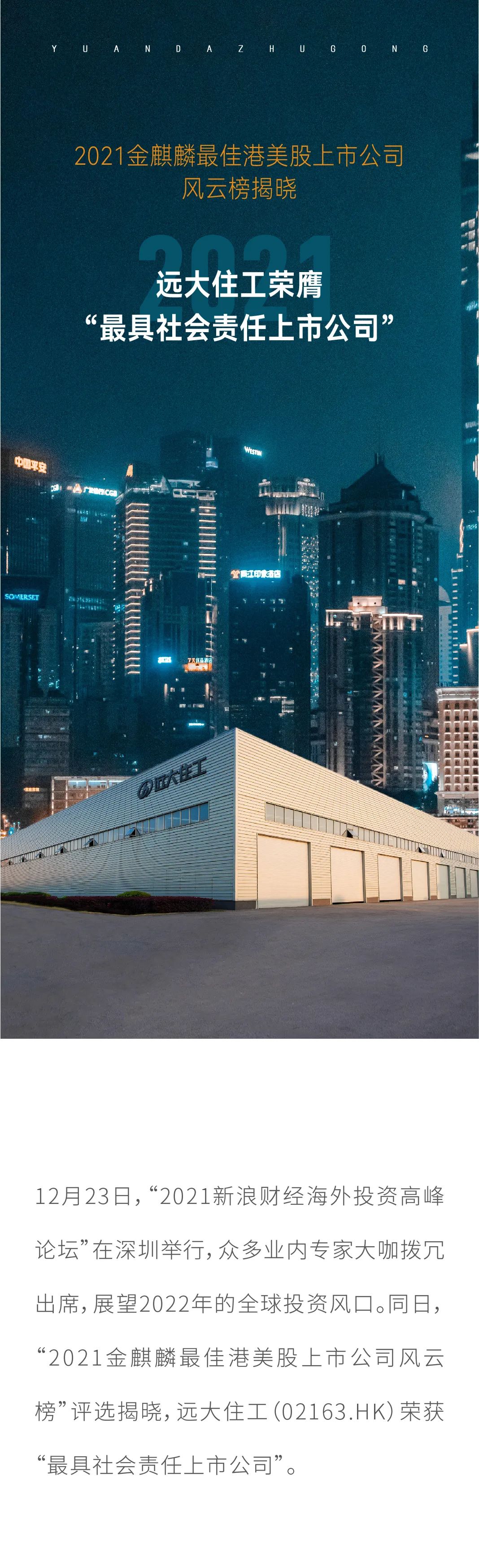 2021金麒麟最佳港美股上市公司風云榜揭曉 遠大住工榮膺“最具社會責任上市公司”