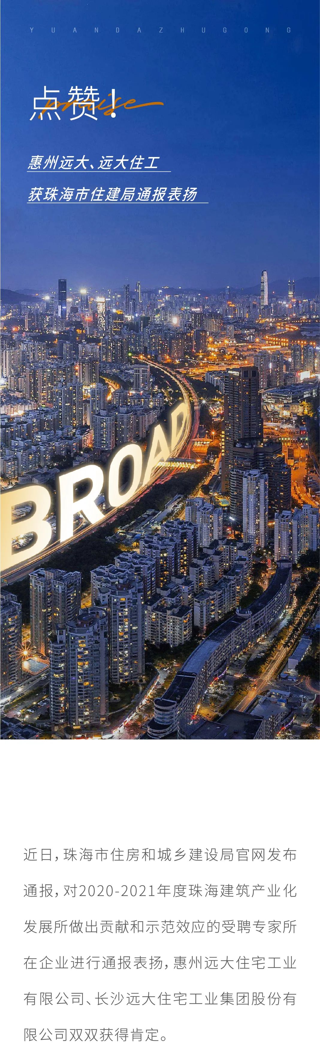 點贊!惠州遠大、遠大住工獲珠海市住建局通報表揚